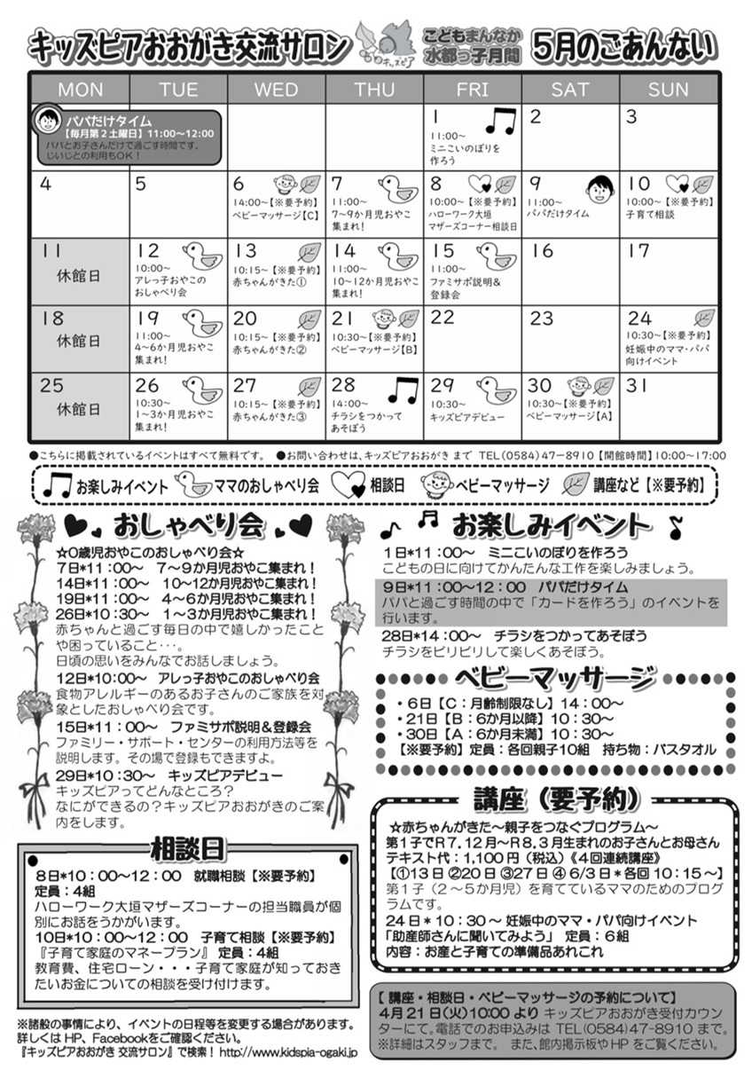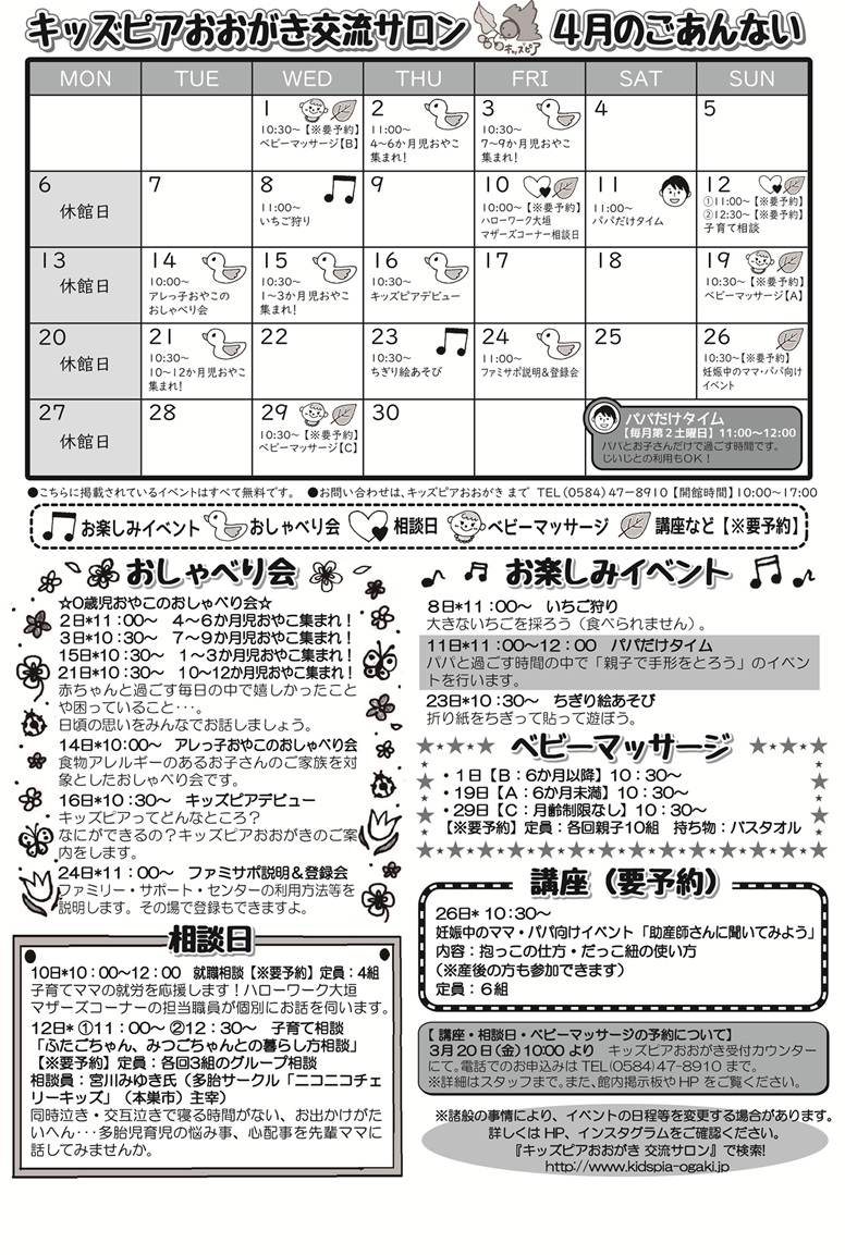 キッズピアおおがきは、乳幼児のいる親が子どもとともに交流できる場所です。